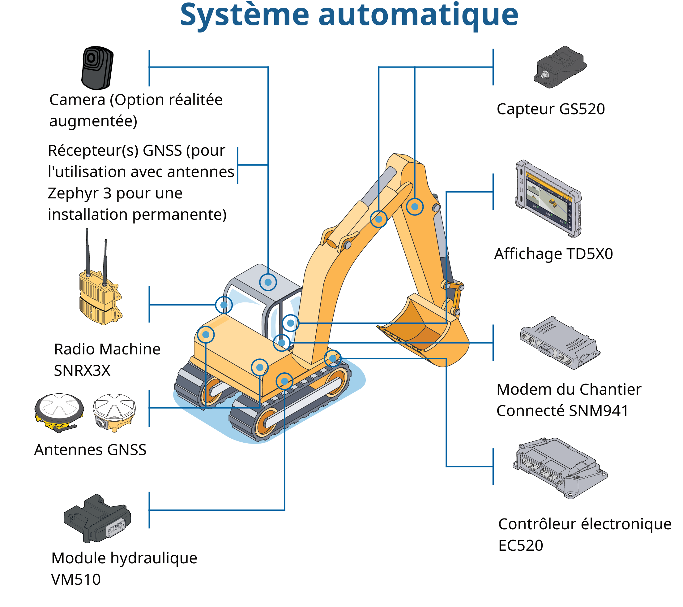 L’ensemble des capteurs du système de guidage Trimble Earthworks sont gyroscopiques et travaillent désormais sur 3 axes simultanément. Par rapport aux autres systèmes de guidage, cela augmente la vitesse de transmission des informations entre les capteurs et l’application Trimble Earthworks sur la tablette cabine, vous permettant ainsi d’accroître votre rythme de travail.